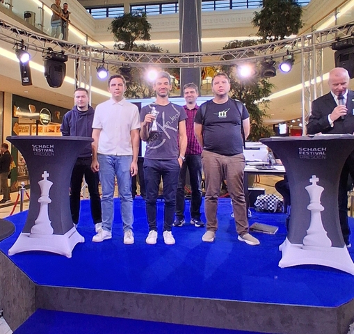 Am ersten Tag trafen sich die Spieler im ELBEPARK Dresden zum Blitzschach. In 11 Runden galt es, so viele Punkte wie möglich zu erringen. Die meisten sicherte sich diesmal der ukrainische FM Valentyn Hulka von den Sfr. Wolfhagen e.V., der damit eine ganze Reihe vom GM und IM hinter sich ließ sowie obendrein auch als einziger Spieler keine Partie verlor. Zu diesem Erfolg unsere große Anerkennung.