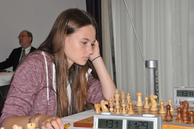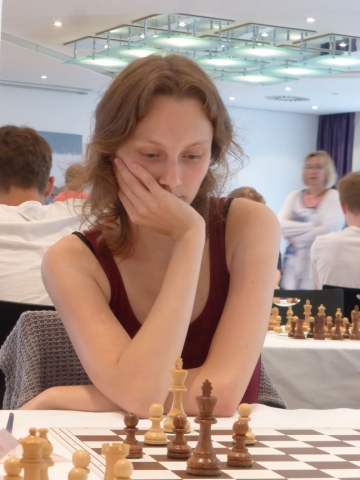 Direkt hinter Larissa rangiert momentan Nathalie Wächter aus Dessau. Beide haben 4,5 Punkte. Nathalie ragt mit ihrer stattlichen Elo 2009 ein wenig heraus. Dieses Rating stammt unter anderem aus ihren schlicht überragenden "acht aus neun" bei der diesjährigen Deutschen Jugend-Einzel U16w - und wir glauben: Da geht noch mehr!
