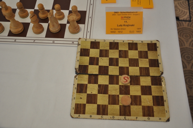 Das Open-B müsste eigentlich Open-S heißen. "S" für "sensationell" (zur besseren Wirkung muss man das wie damals Rudi Carrell aussprechen: "sensaschjonälll"). Hier spielen am ERSTEN Brett in der LETZTEN Runde der an 17 gesetzte Eric Sauer und der an 12 gesetzte Stephan Baumann. Sensaschjonälll. Beide haben 6,5 Punkte, was nach 8 Runden sehr viel ist, aber die starken Jungs dahinter sind Guntram Ledfuß und Peter Abdurachimow, beide mit 6,0 Punkten. Die letzte Runde eines großen Turniers ist nun mal spannend. Im Open-B interessierte uns immer auch das "Schicksal" der Schweriner Klinge-Zwillinge Sabina (Elo 1741) und Alexandra (Elo 1748). Letztere hat 2,5 pt., wurde bereits dadurch "geadelt", dass Alexandra Kline auch schon für die berühmten Mädels aus Friedberg spielte. Die Rating-Kurve beider Schwestern ist seit Beginn der Aufzeichnungen beängstigend aufsteigend. Wäre es eine Fieber-Kurve, käme der Onkel Doktor ums Eck gesprungen. So aber kommt wohl bald öfter mal der Turnierdirektor. Zur Preisverleihung. Aber, bleiben wir am Boden: Hier in Dresden war's noch nicht der große Wurf. Der kommt noch. Das trifft auch auf die Dresdnerin Ngoc Han Julia Bui zu, die ihr unbestrittenes Talent bereits bei der DSAM aufblitzen ließ, aber hier in der Heimat sozusagen Ladehemmung hatte. Völlig normal, so was kennt die Kickertruppe vom Dynamo ja auch. Sprudelnder Quell Dresdner Freude ist aber Olena Kosovska, Grün-Weiß Dresden, Frauen-Regionalliga (es gibt im deutschen Schach noch keine Frauen-Ober- oder Landesliga, jedenfalls nicht überall. Die Regio ist damit die zweithöchste Liga), 2014 sechs aus neun in einem Turnier namens ZMDI Open-C, fünf aus acht Bezirksklasse Dresden, ... ja, hatte die Kostenjuk etwa bessere Resultate? Noch besser machte es bisher Marie-Helen Herbrig aus Bautzen. 4,5 Punkte, ein jetzt schon schönes Turnier – und das Beste kommt ja vielleicht sogar noch! Und wer sich an den ersten Artikel zum Turnier erinnert (ja, tue ich), der kennt auch den Namen Selina Moses (DWZ 1859); die noch sehr junge Dame aus Coswig hat 5,5 Punkte, ist damit geteilte Fünfte. Im Fußball gab's vom DFB für die Kicker-Damen einmal ein (abscheuliches) Kaffee-Service ... ob wir das hier beim Schach so ähnlich machen werden? Meißen ist nicht weit, muss man befürchtend hinzu setzen.
