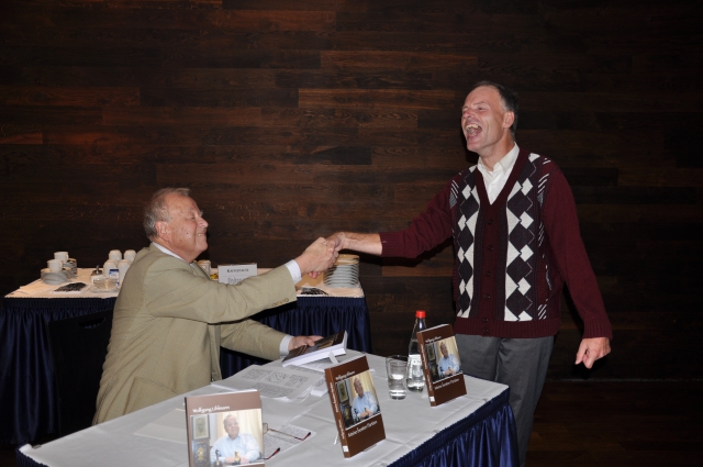 Nach Grußworten „unseres“ Sportbürgermeisters Winfried Lehmann, dessen Amtszeit demnächst endet, dankte Dr. Dirk Jordan seinem langjährigen Freund und Weggefährten mit sehr persönlichen Worten für die langjährige, außerordentlich engagierte Unterstützung des Schachsports in Dresden. In seinen Worten ließ Dr. Jordan noch einmal die herausragenden Schach – Ereignisse wie z.B. die Schacholympiade 2008 Revue passieren. Zur Erinnerung überreichte er Winfried Lehmann eine gerahmte Plakette des ZMDI Schachfestival e.V.. Nach weiteren Grußworten von Herbert Bastian (Präsident des Deutschen Schachbunds) und Hans – Wolf Colsman ( Marketing Manager ZMD AG) folgte die Auszeichnung der besten Dresdner Nachwuchstalente durch GM Wolfgang Uhlmann und Andreas Schneider, technischer Leiter des ZMDI Schachfestival Dresden e.V.. In der vergangenen Saison konnten unter den in Dresdner Vereinen aktiven Kindern und Jugendlichen bis 18 Jahre, Vivien Nguyen vom USV TU Dresden und Dai Phan Trong vom SV Dresden Leuben ihre Schachwertzahl am meisten verbessern. Die Freude über den Pokal, der jährlich von GM Wolgang Uhlmann aus seinen Siegerpokalen gestiftet wird, war bei den beiden riesig. Beide spielten dann noch beim Uhrenhandicap gegen GM Sebastian Siebrecht, dem es gelang, alle sechs Partien für sich zu entscheiden.