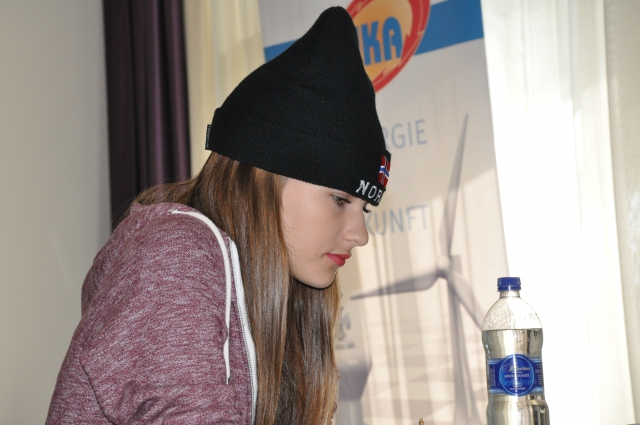 In der gleichen Gruppe saß die nicht ganz so hoch gesetzte Alina Zahn (Elo 2004) saß an Brett 14 der A-Gruppe dem an 19 gesetzten IM Cliff Wichmann gegenüber (seine Elo 2358 ist ja nicht gerade wenig). Sie fand ihre schwarzen Figuren heute irgendwie chique und gewann damit gegen den hohen Favoriten. Das Wort "Sensation" durchraste die Gänge des schönen Hotels. Vielleicht ist so ein Ergebnis aber doch ein ganz normales Resultat ihrer gewachsenen Spielstärke und Erfahrung mit solchen herausfordenden Partien. Schließlich spielt die zu jeder Hoffnung berechtigende Dame noch im U18-Bereich der Schachjugend, war beim Int. Juniorinnenturnier Erfurt 2014, im Meisterturnier Erfurt 2014 ... Die Erfurterin ist keine Frau der weiten Wege, so scheint's.